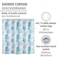 WENKO Rideau de douche Lagoa – Polyester – Blanc / Bleu ciel
