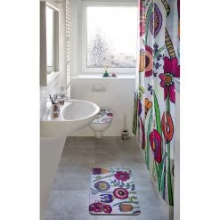 WENKO Rideau de douche Home Office – Polyester – Blanc / Noir