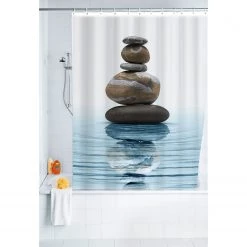 WENKO Rideau de douche Meditation – Fibres synthétiques – Bleu / Gris
