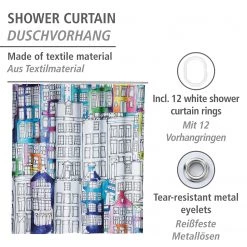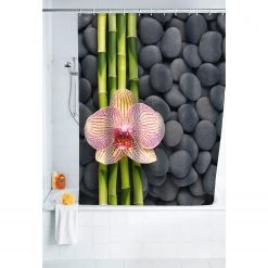 WENKO Rideau de douche Stones Flower – Fibres synthétiques – Crème / Gris