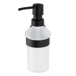 WENKO Distributeur de savon Bosio – Verre dépoli / Acier inoxydable – Capacité : 200 ml – Noir