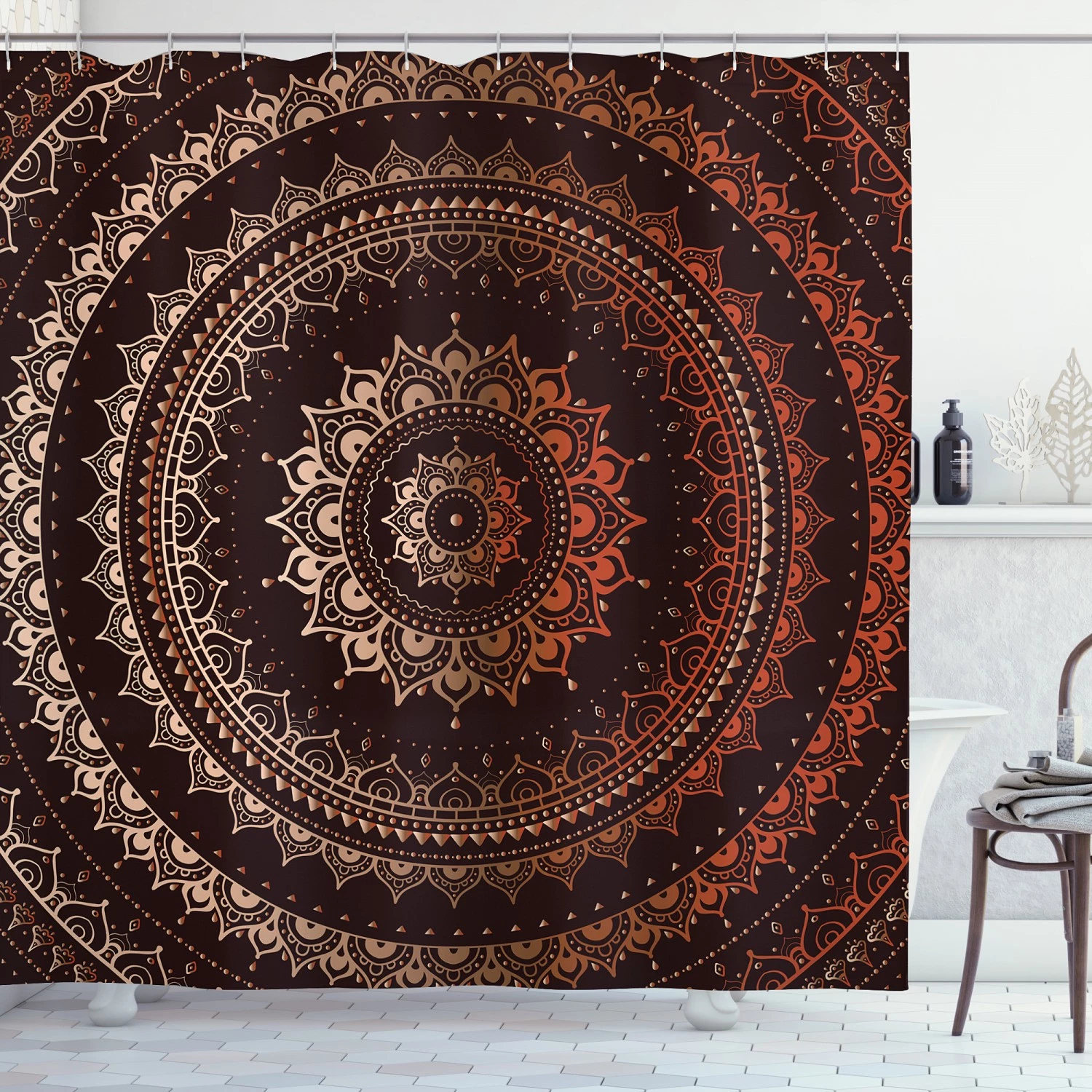 WENKO Rideau de douche Stones Flower – Fibres synthétiques – Crème / Gris