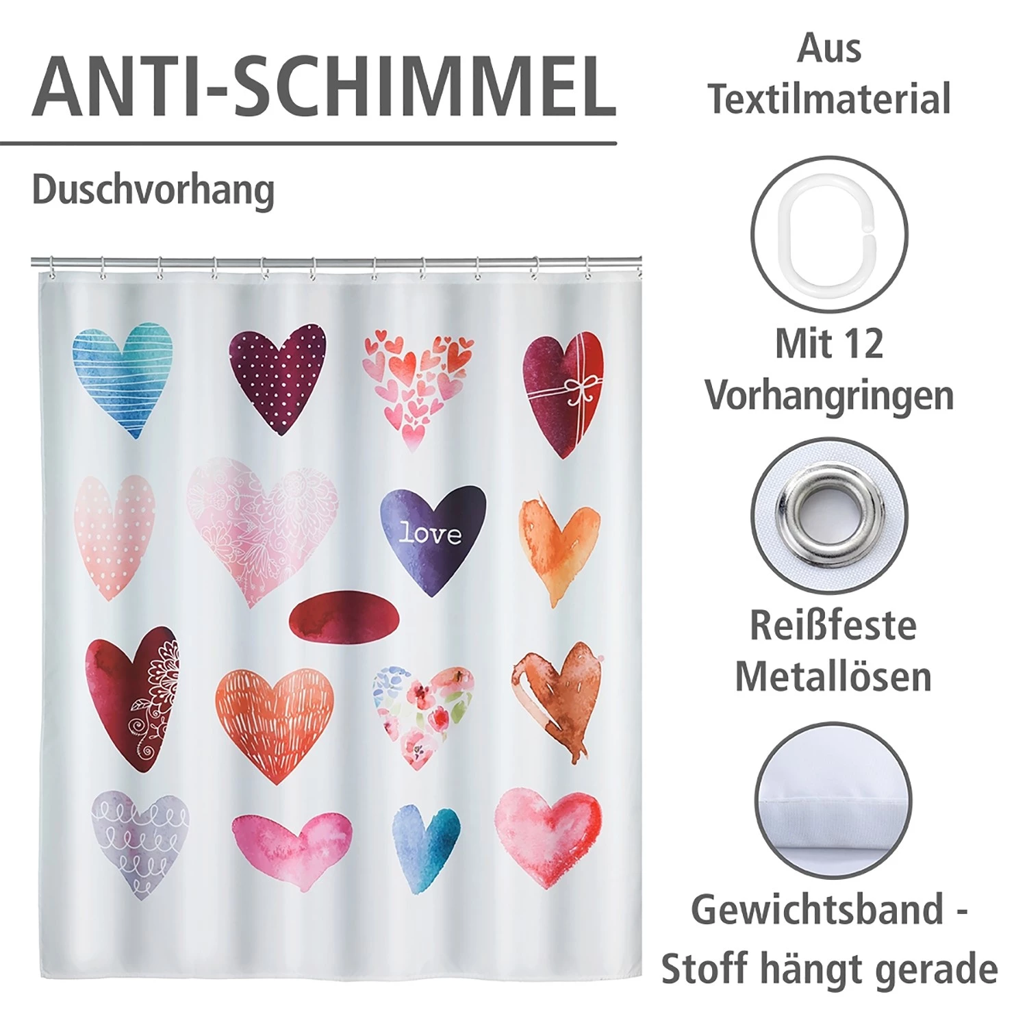WENKO Rideau de douche Stones Flower – Fibres synthétiques – Crème / Gris