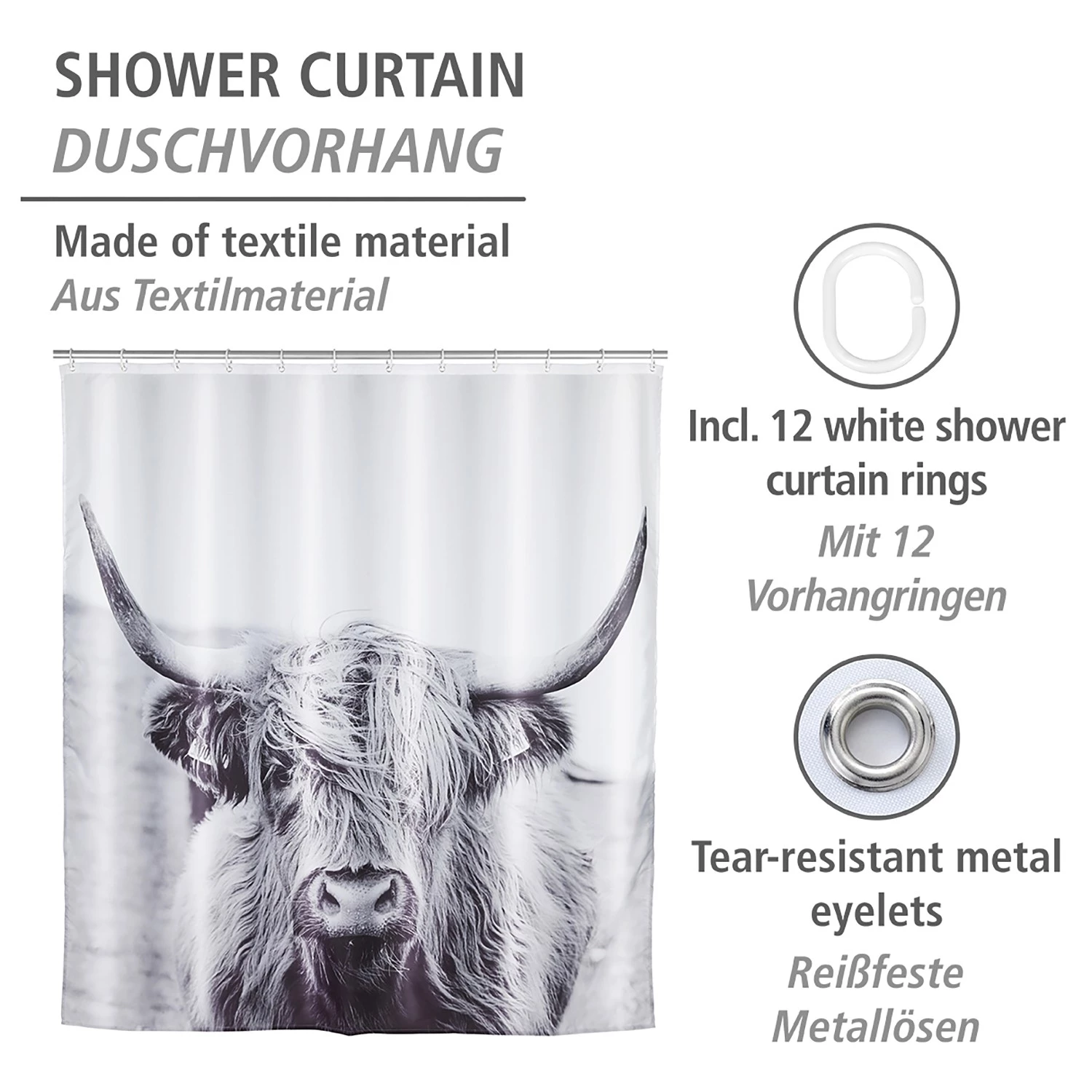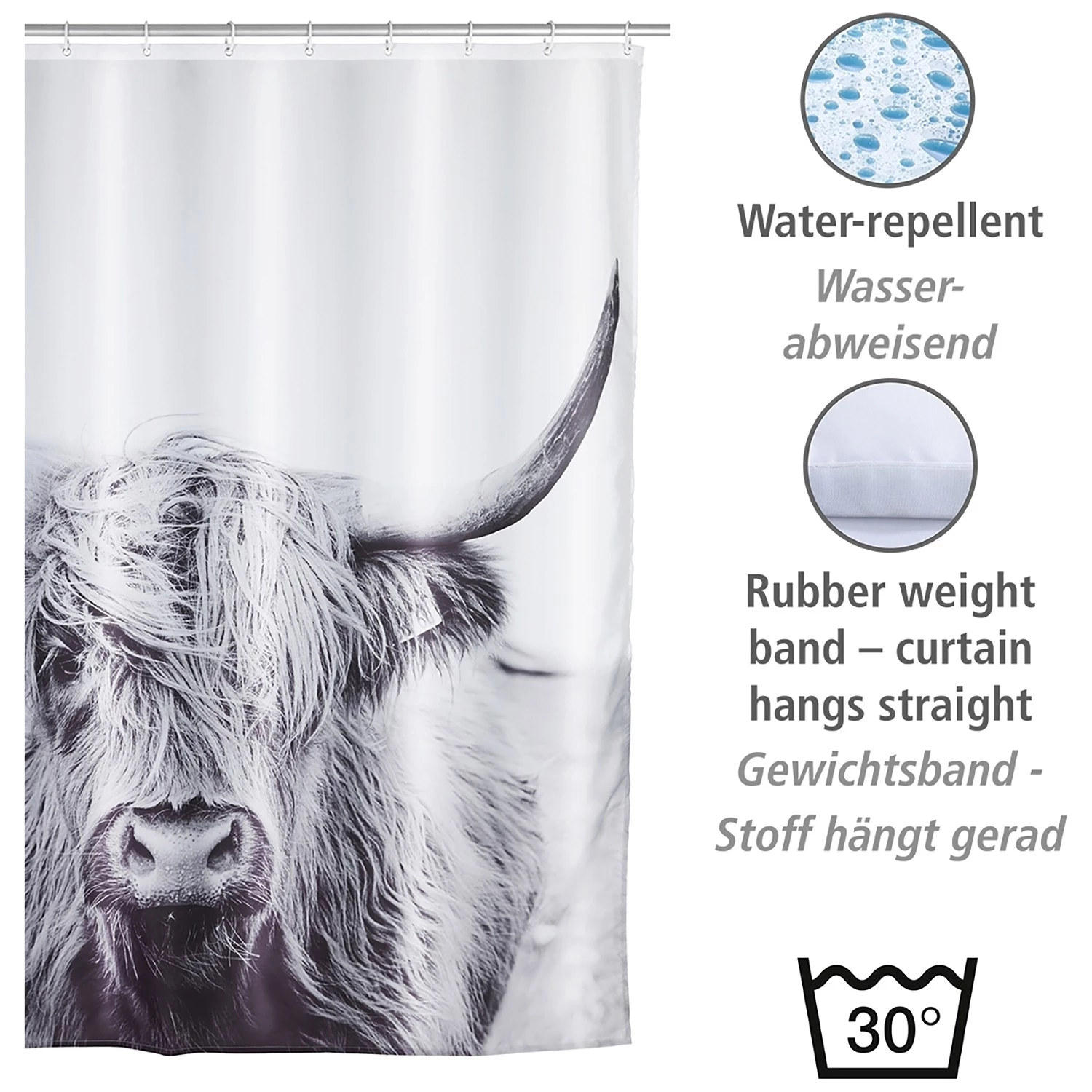 - Contenu de la livraison : Rideau de douche, 12 anneaux