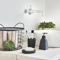 Zeller Verre à dents Dark Stone – Polyrésine – Noir – 7,7 x 8,8 cm
